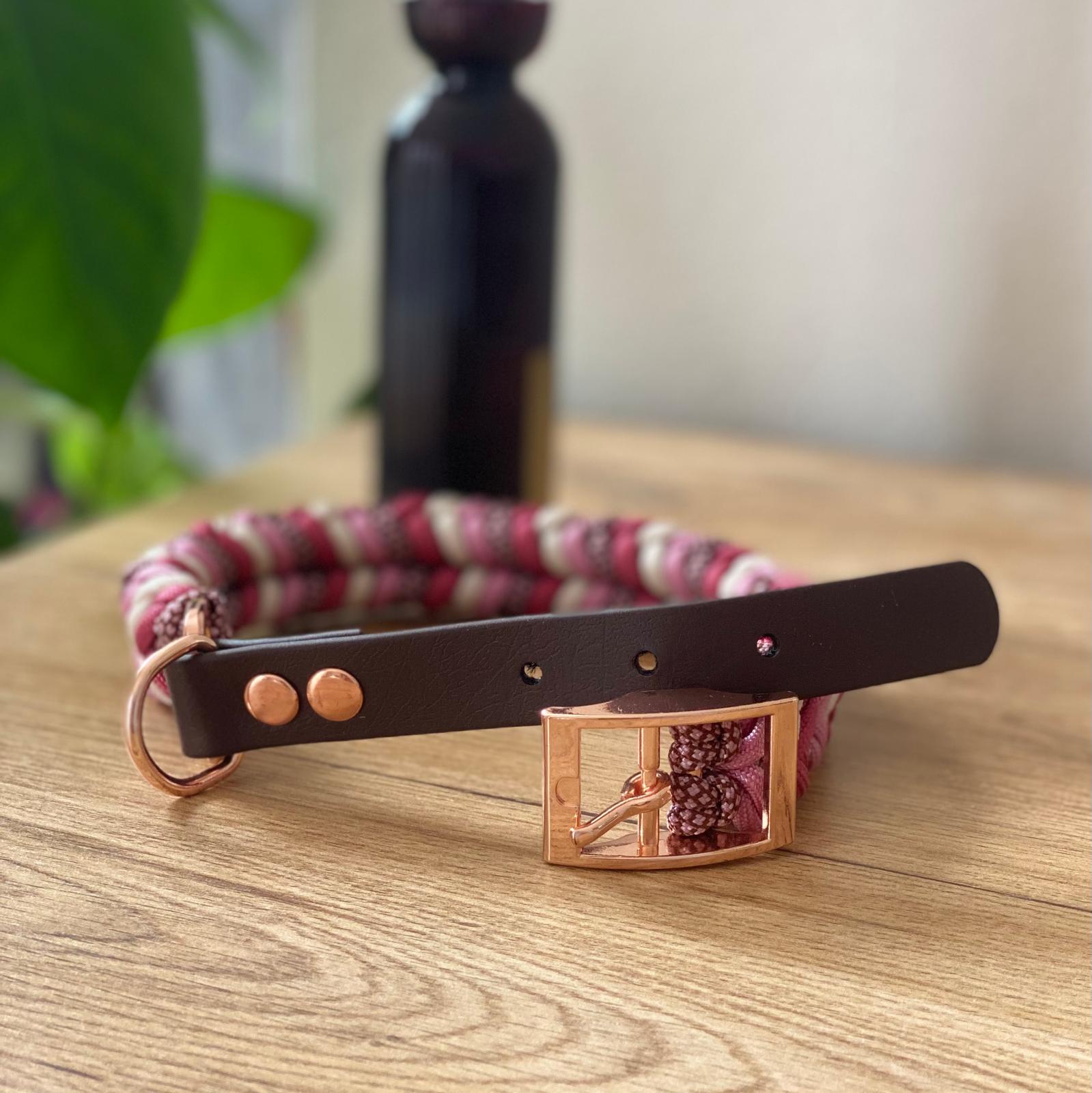 - Verschluss: Biothane Dunkelbraun mit Rose